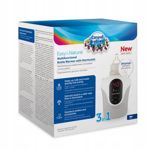 Електропідігрівач пляшечок 3 в 1 Canpol babies - багатофункціональний пристрій, який дозволяє легко і швидко приготувати їжу для малюка. Це гарантує комфорт і зручність використання. Має сенсорну та інтуїтивно зрозумілу панель управління та функцію підтримки температури - навіть всю ніч! Швидко та рівномірно розігріває молоко та обіди в баночках, безпечно розморожує, а за потреби також дезінфікує пляшечки та соски. Апарат працює в 3 режимах: пляшка - підтримка температури рідких продуктів до 10 годин, гарячий - швидкий розігрів і знезараження парою і обід - підтримка температури твердих продуктів до 3 годин. Підігрівач універсальний, підходить до більшості пляшечок і сосків, представлених на ринку. Це незамінний помічник кожної мами, яка годує з пляшечки, а згодом розширює раціон свого малюка.Â