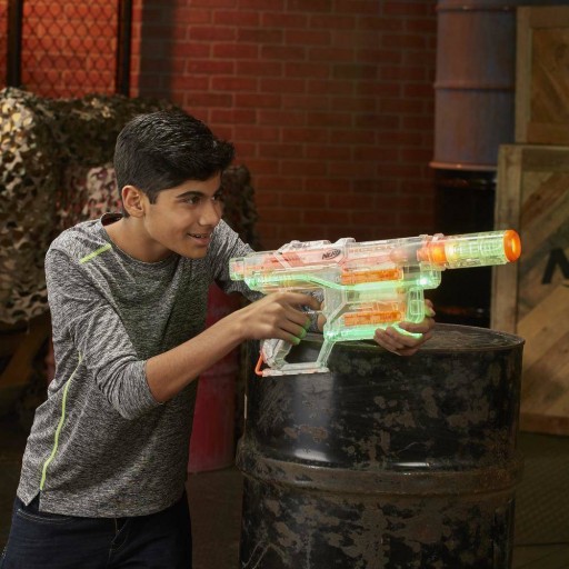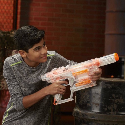 Modulus Shadow ICS-6 E2655. Бажаєте ідеального камуфляжу? Хочете повністю зникнути з поля зору? Зробіть це за допомогою бластера Nerf Modulus Shadow ICS-6! Прозорий корпус підсвічується одним натисканням кнопки.