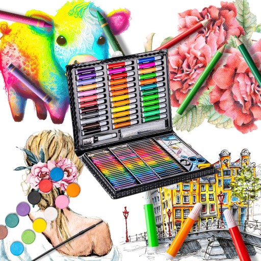Художній набір для маленьких і великих художників дошкільного та шкільного віку, які люблять малювати та малювати. Він складається зі 150 різноманітних інструментів, які сприяють розвитку уяви та творчості. Широкий вибір олівців і фломастерів неодмінно задовольнить кожного користувача, а захисна папка дозволить використовувати набір тривалий час.