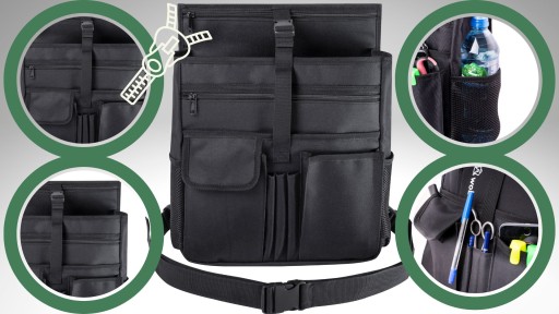 - Містка - сумка має багато практичних кишень: 2 глибоких м'яких відділення, дві великі кишені на блискавці, два еластичних тримача для пляшок, легкодоступний тримач для ручок, дві кишені спереду для дрібниць і багато інших практичних місць.