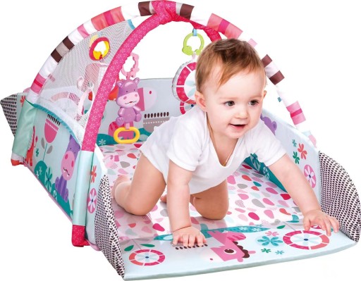 На першому етапі життя дитина, лежачи на спині, грає різнокольоровими іграшками, покладеними на решітки. Висячі іграшки пробуджують цікавість дитини та спонукають її діставати і хапати іграшки. Іграшки можна від'єднати і вільно ними грати, в комплекті з килимком 30 різнокольорових кульок, які урізноманітнюють веселощі.