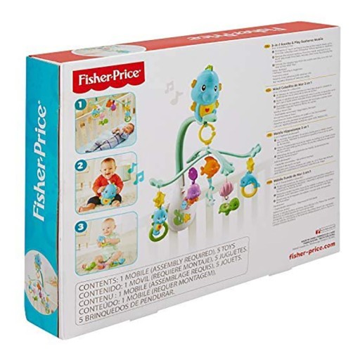 Музична карусель від Fisher Price - ідеальна іграшка для кожного малюка. Діти можуть познайомитися з морськими мешканцями з перших днів життя і отримати від них максимум задоволення. Кожна тварина неодмінно приверне увагу дитини своїм цікавим забарвленням. Карусель допомагає дитині розвивати моторику та ручні навички. Великий чарівний блакитний коник спостерігає за дельфіном, восьминогом, китом, рибою і маленьким морським коником, який буде радувати вас заспокійливою музикою протягом 15 хвилин.