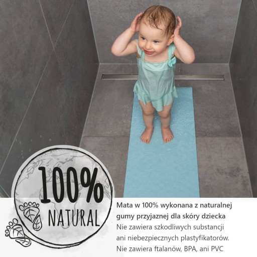 - Килимок виготовлений з 100% натурального каучуку, приємний на шкіру. Не містить BPA, PVC, фталатів та інших шкідливих речовин