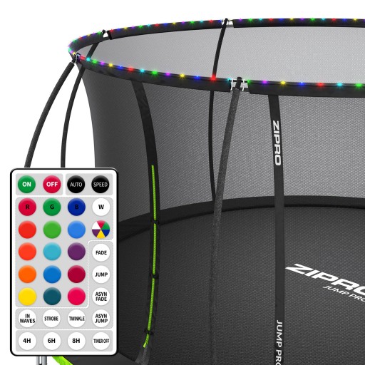 Освітлення для батута ZIPRO вражає тим, що завдяки щільно розташованим світлодіодам весь батут рівномірно освітлюється.