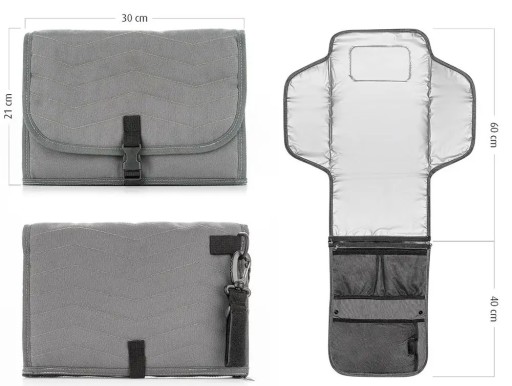 - Просторий килимок (у розкладеному стані: 30 см x 104 см) полегшує зміну підгузків Вашій дитині в дорозі.