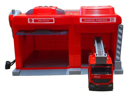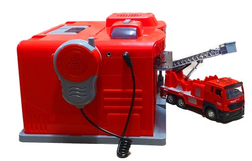 Малюки можуть по-справжньому говорити в мікрофон і використовувати гучномовець, щоб закликати пожежників до дії. Тепер їх почують усі, а головне – допомога прибуде вчасно. На даху встановлені спеціальні кнопки, при натисканні на які подаються відповідні звукові сигнали.Станція розділена на дві частини: станцію з рухомими воротами та критий гараж зі шлагбаумом.