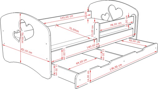 - ko Happy Design - Спальна площа: 140 см x 70 см, загальні розміри: 144 см x 82 см x 57 см