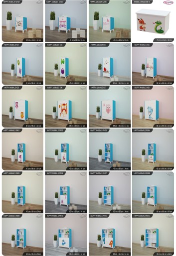 Майже 90 моделей меблів (тумбочки, скрині для іграшок, комоди, стелажі, шафи, столи, книжкові полиці) призначені для будь-якого облаштування дитячої кімнати.