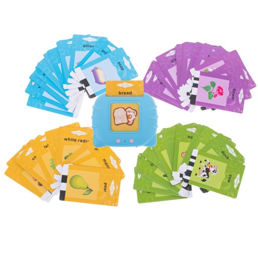 - Кожна картка містить два попередньо завантажених слова та відповідний малюнок, що стимулює як зір, так і слух дитини, забезпечуючи найефективніший спосіб навчання.