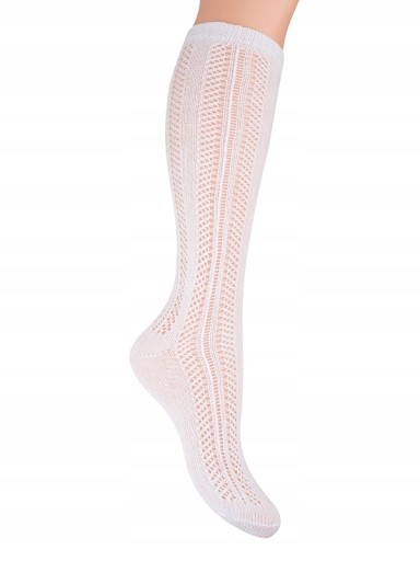 Ажурні білі гольфи з бантом у краківському стилі стануть чудовим доповненням до місцевого костюму, а бавовняний матеріал забезпечить високий комфорт використання маленьким дітям.