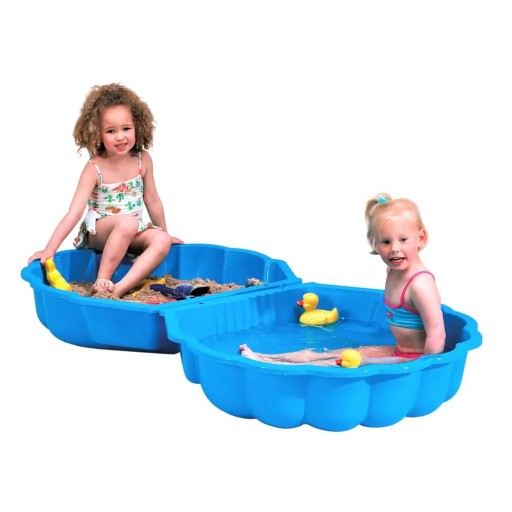 Пісочниця складається з двох частин. Це ідеальне рішення для багатогодинного відпочинку на природі. Іграшка буде працювати як пісочниця і басейн у спекотні дні. Після наливання води одну раковину можна використовувати як басейн, іншу як пісочницю. - Пісочницю можна закрити і безпечно залишити на ніч, захистивши пісок від тварин або опадів.