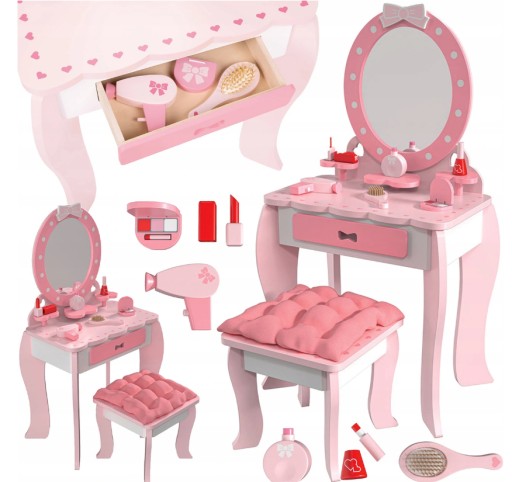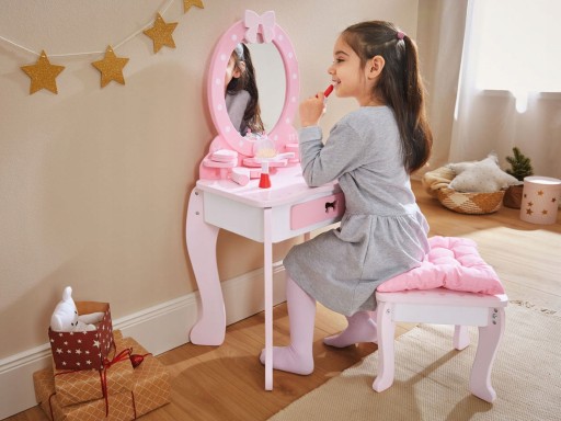 Дерев'яний туалетний столик Playtive з великим дзеркалом, табуретом і аксесуарами