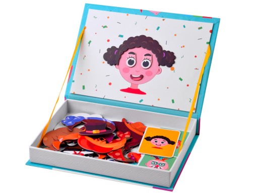 Чарівний пазл - це набір, який містить 55 елементів, які дозволяють створювати щасливі обличчя. Магнітні пазли з обличчями - чудова розвага для дітей, які люблять грати в візажиста. У набір входять різнокольорові магніти, які розміщені на магнітній дошці, завдяки чому можна розважатися навіть під час подорожі. Магнітний пазл - це іграшка, яка розвиває творчі здібності та уяву. Пазл дає багато можливостей для створення, тренує логічне мислення та спритність рук дитини.