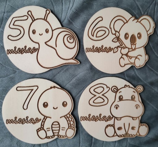 Красиві, дбайливо виготовлені дерев'яні фотокартки, що зафіксують перший рік життя дитини з оригінальними візерунками, зроблять кожен альбом красивішим.