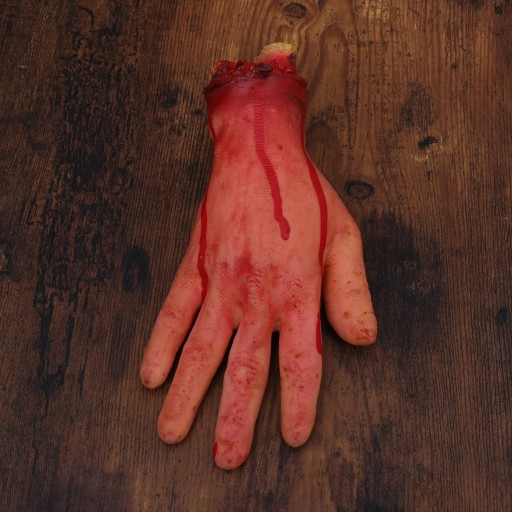 Цей предмет для Хеллоуїна, вечірки, випускного або будь-якого іншого модного вбрання. Він ідеально підходить для того, щоб налякати друзів і родину та створити жахливу атомосферу. Він виготовлений із гумового матеріалу, який на дотик схожий на шкіру. Дизайн робить його гіперреалістичним із ручними та вирізаними частинами тіла.