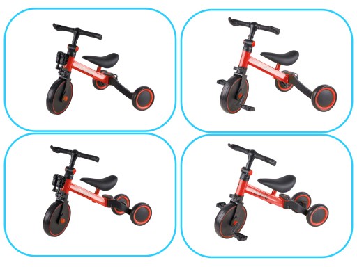 Перший єтриколісний велосипед для бігу!Якщо закріпити педалі в спеціальних тримачах і розвести колеса в сторони, вийде комфортний, стійкий автомобіль, ідеальний для перших пригод на колесах!