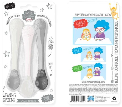 Ложки для розширення раціону Nana's Manners виготовлені з безпечних для здоров'я дітей матеріалів