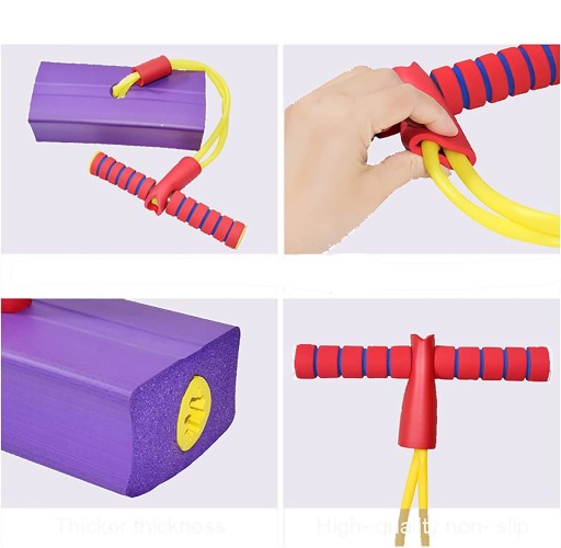 Стрибання на скакалці — це нескінченна розвага: поролоновий пого — весела та захоплююча іграшка, усередині якої є пищалка, завдяки якій кожен стрибок видає смішний звук.