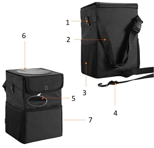 - ✅Відро для сміття - має кришку, що замикається, із віконцем, що відкривається і водонепроникну внутрішню вставку, яку легко мити. Стрижки, бананові шкірки, серветки, папір, пляшки чи стаканчики для напоїв більше не будуть проблемою та захаращувати автомобіль, оскільки вони швидко потраплять у смітник. Для більшої зручності можна використовувати поліетиленові пакети, які кріпляться за допомогою двох гачків, розташованих з боків виробу.