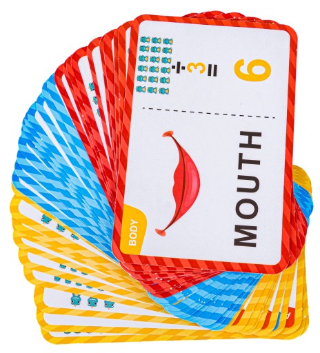 За допомогою кольорових карток дитина вивчає англійські назви різних предметів. Картки допомагають розпізнавати літери, писати слова, складати слова та розпізнавати предмети. Картки двосторонні - містять як загадки-ілюстрації для вгадування назви предмета, так і математичну головоломку.