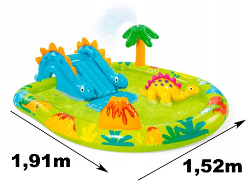 âï¸ СОТНІ ГОДИН РОЗВАГ -ÂНадувний майданчик - це більше, ніж просто басейн. Це цілий комплекс, завдяки якому діти активно проведуть свої канікули чи літні вихідні. Багато атракціонів, натхненних світом динозаврів, таких як:Âнадувна гірка, фонтан із пальми та динозавр дають вам можливість розіграти сотні сценаріїв.