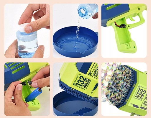 З нашою машиною ви можете забути про виснажливе видування окремих бульбашок, які зазвичай лопаються через кілька секунд. Базука робитьбульбашки, які зберігаються набагато довше, ніж здуті, і цеблискавичною швидкістюр.