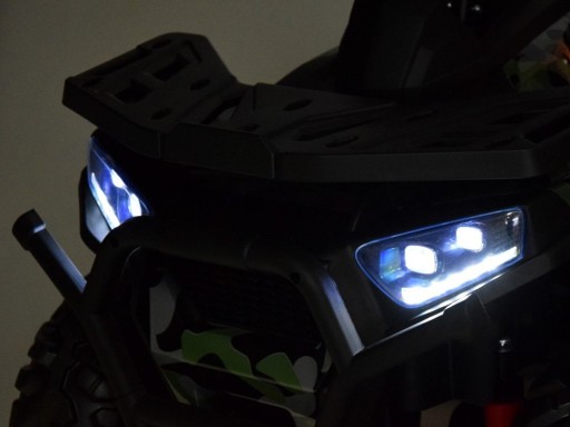 Годинники з підсвічуванням, світлодіодне освітлення роблять зовнішній вигляд автомобіля більш привабливим. У квадроцикла амортизатори, широке зручне сидіння зі спинкою.
