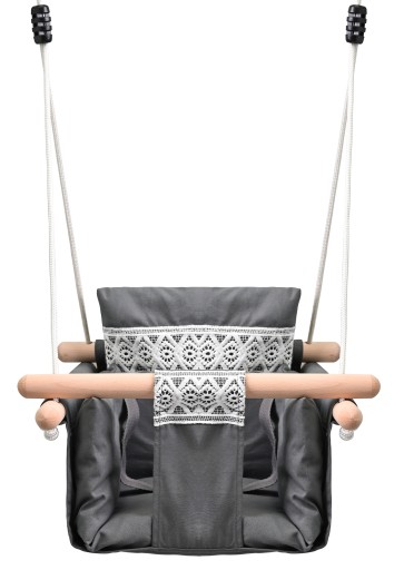 Безпечна дитяча гойдалка з дерева та міцної тканини.