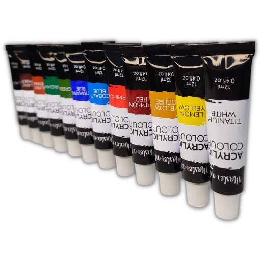- 12 тюбиків акрилових фарб