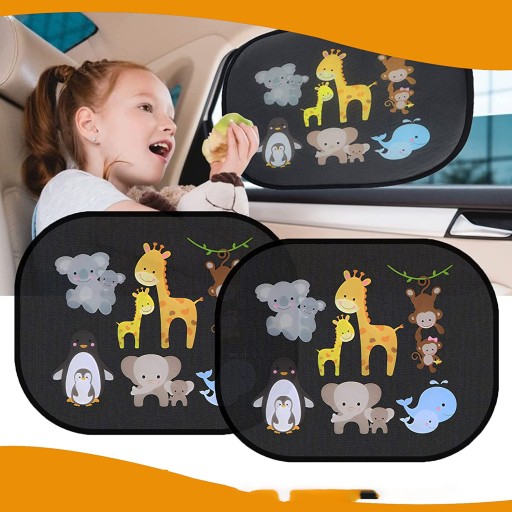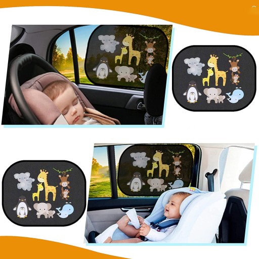 ????【Дизайн тварин】: Наші сонцезахисні навіси для вікон автомобіля розроблені з милими барвистими візерунками тварин, які можуть покращити взаємодію дітей, блокуючи сонячне світло та ультрафіолетові промені, щоб водії могли керувати безпечніше, а діти не нудьгували.