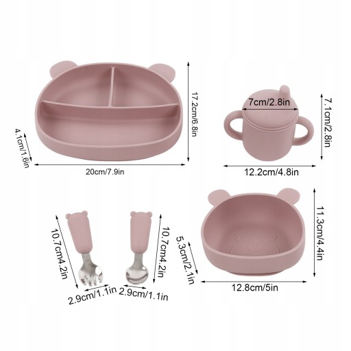 5. Упаковка: спеціально розроблена для немовлят і дітей з тарілкою, мискою, чашкою для пиття, ложкою, виделкою.