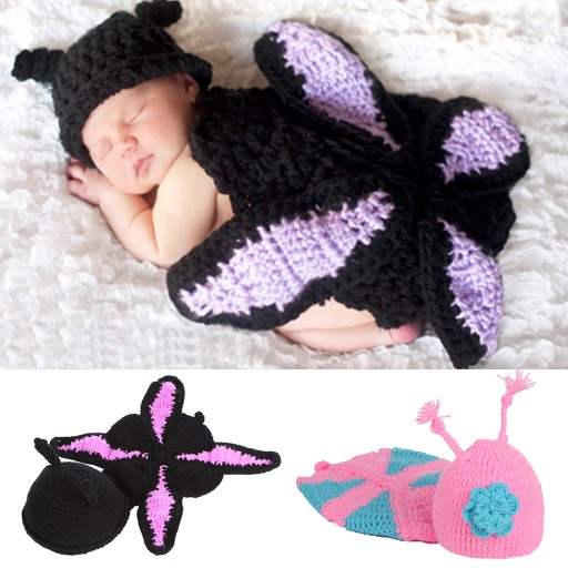 Гарний в'язаний гачком одяг метелик Реквізит для фотографій Одяг для немовлят Рожевий