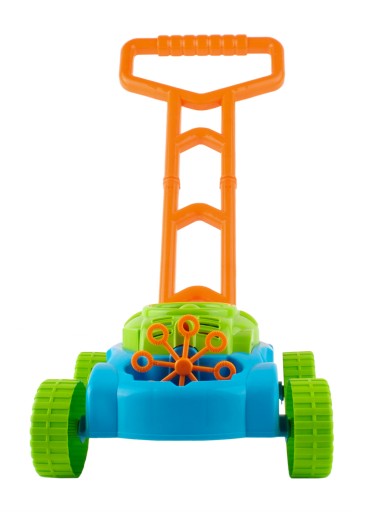 Іграшка призначена для дітей від 3 років. На ньому можна не тільки їздити, але й весело косити газон. Механізм, що живиться від батареї, виробляє бульбашки, які випускаються з передньої частини корпусу косарки під час руху.У комплект входить ємність з бульбашковою рідиною, тож одразу після складання можна починати грати.ÂБульбашки випускаються автоматично. Невеликий вентилятор, розташований у верхній частині корпусу двигуна косарки, створює потік повітря, який спрямовується на8 обертових кілець.Вони занурюються в ємність для бульбашкової рідини і, по черзі, просуваються під маленьку насадку. Таким чином бульбашки випускаються безперервноЗавдяки 8 кільцям іграшка випускає велику кількість бульбашок одночасно.