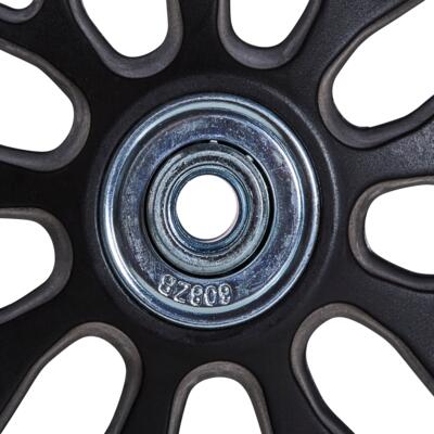 Колеса з поліуретанової гуми та кулькові підшипники забезпечують тиху їзду по будь-якій місцевості.