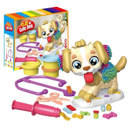 Фігурка собаки:До складу іграшки входить мила фігурка цуценя, яку діти можуть досліджувати та стилізувати, наприклад робити шубку з тіста, розрізати її та видаляти бліх пінцетом.