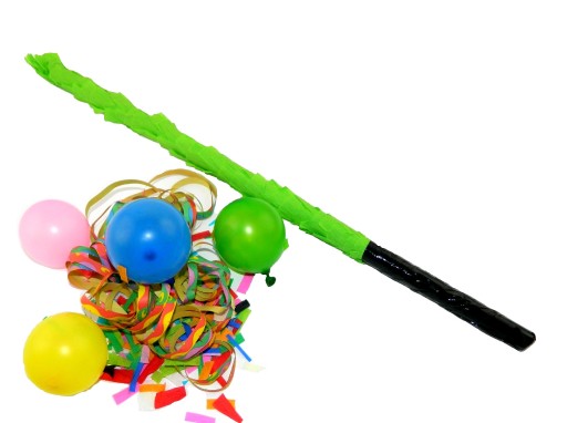 Піньята має спеціальну ручку для підвішування та спеціальний отвір, через який її можна наповнити солодощами та маленькими подарунками.