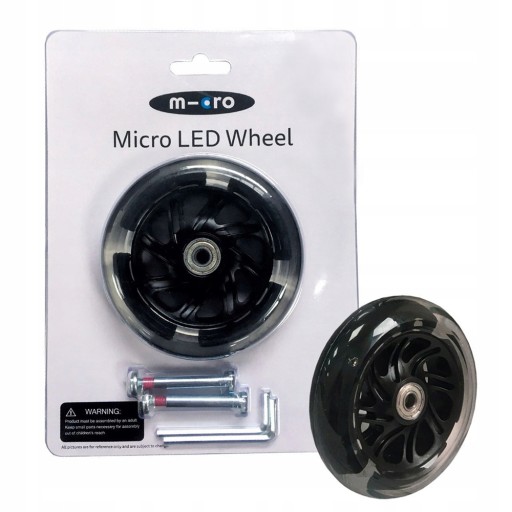 Комплект передніх світлодіодних фар для скутерів Maxi Micro. У комплект входять 2 світлодіодні колеса з підшипниками, 2 гвинти та 2 шестигранні ключі.