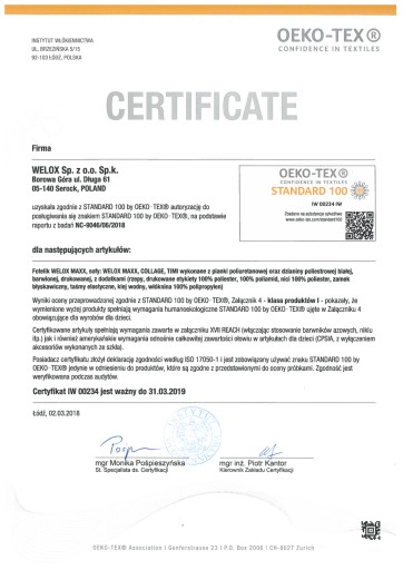 - Сертифікат Oeko-Tex 100 - якість та безпека!