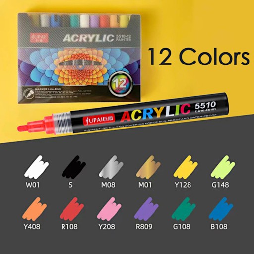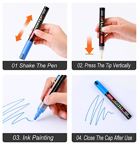 â Наші акрилові маркери спеціально розроблені, щоб дозволити вам створювати стійкі візерунки та прикраси на різноманітних матеріалах. Незалежно від того, чи хочете ви створити візерунок, розписаний вручну на камені, персоналізувати порцелянову чашку чи додати барвистий акцент на склі, ці маркери вирішать це завдання.
