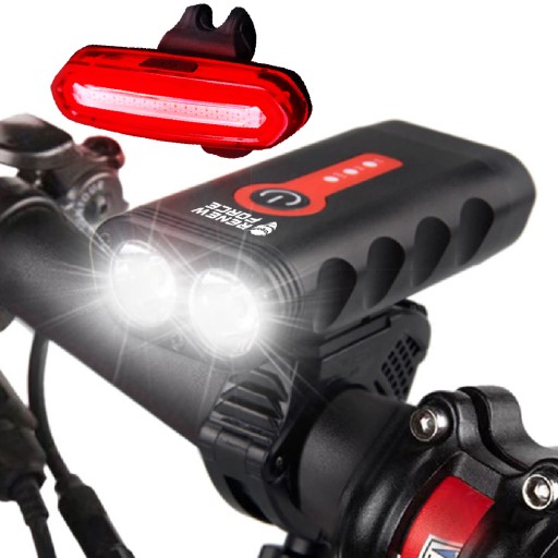 БІЛА ЛІХТА НА ВЕЛОСИПЕД З РЕГУЛЮВАННЯМ ІНТЕНСИВНОСТІ СВІТЛА З ДОДАТКОВОЮ ЧЕРВОНОЮ ЗАДНЬОЮ ЛАМПОЮ