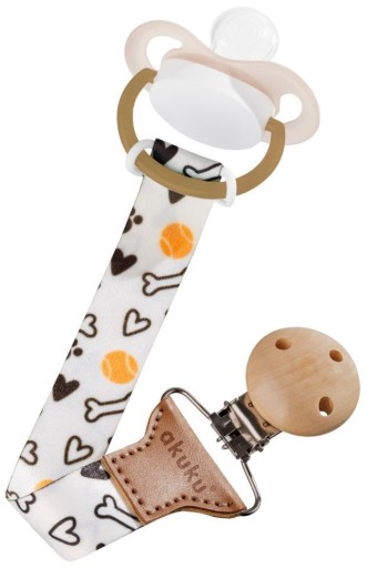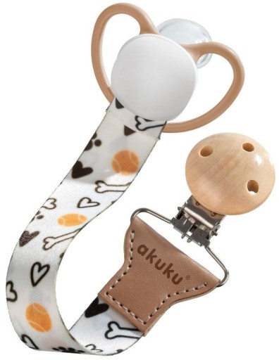 Спеціально адаптований для безпеки дитини ремінь виготовлений з міцної стрічки. Він оснащений відповідним кріпленням у вигляді дерев'яної скоби, що забезпечує легкий і швидкий монтаж. Крім того, це унікальна прикраса для одягу малюка, що забезпечує легкий доступ до пустушки в будь-який час.