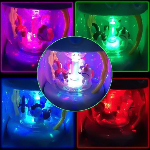 Іграшка працює як музична шкатулка, всередині якої крутяться коні. Має 6 звукових кнопок, включаючи великий барабан. Поморгайте, поки світиться світло. Вночі іграшка функціонує як проектор - світло, таким чином імітуючи зірки. Іграшка має режим очікування через 60 секунд без використання звуків. Іграшка чудово розвиває органи чуття дитини та надовго зосереджує увагу дитини.