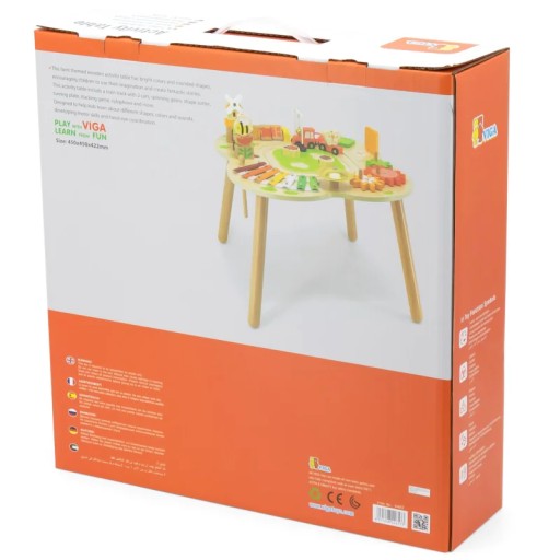 Дерев'яний розвиваючий столик від Viga - одна з провідних іграшок, яка прослужить довго і забезпечить вашій дитині багато років цікавої та творчої гри. Стіл досить великий, щоб одночасно могли грати кілька дітей. Барвистий навчальний столик радує око та заохочує веселитися. На столі шестерінки, тарілки, дзвіночок, пірамідки, залізнична колія та пазли.