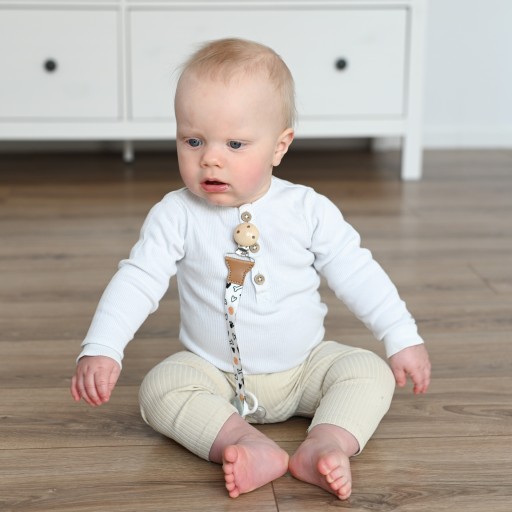 легкий і швидкий монтаж. Також це унікальна прикраса для одягу дитини. Пустушка завжди під рукою.