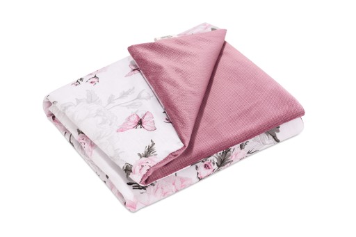 Набір подушки та ковдри ідеально підходить для денного сну, прогулянок, як ігровий килимок або як подарунок на свято дитини. Двостороння ковдра колекції PINK FLOWERS з наповнювачем підвищить тепловий комфорт у холодні дні.