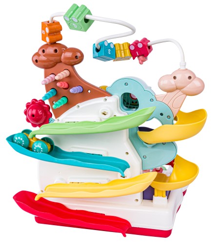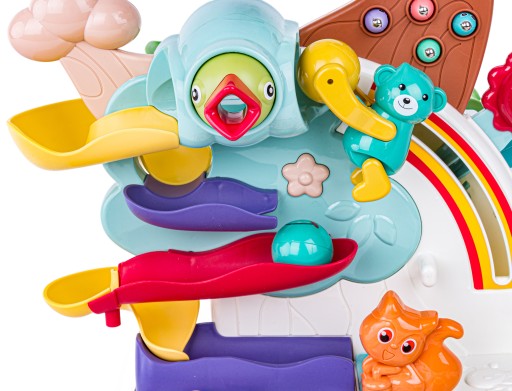- слайд- за допомогою спеціального важеля «сонячко» ми можемо привести в рух щасливого ведмедика. Тедді повертається і ловить м'яч з нижньої частини доріжки, потім повертається і відпускає його на верхній частині гірки - це чудова розвага, яка сподобається кожній дитині.