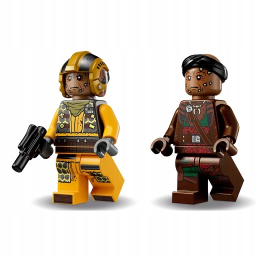 Дві мініфігурки LEGO Star Wars зі зброєю, пілот винищувача має бластерний пістолет, а Вейн має меч.