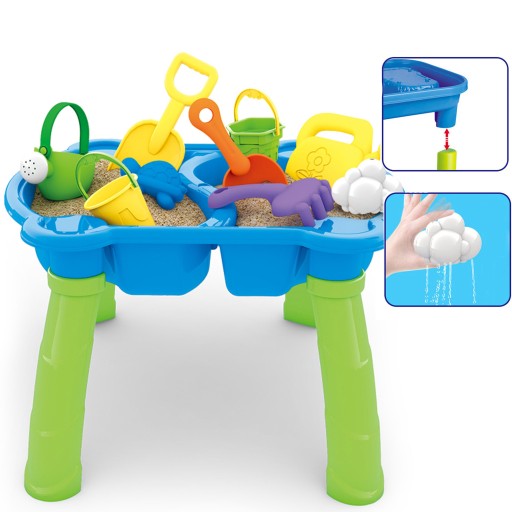 Sand Table від бренду WOOPIE - ідеальна іграшка для ігор з водою і піском. У набір входить 9 аксесуарів: відра, лійки, лопата та багато іншого. Стіл розділений на дві частини, одну можна наповнити водою, а іншу піском. Набір призначений для розваг вдома та на вулиці. Ідеально підходить для гри вдома та на пляжі або в пісочниці.