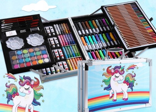 У нашому художньому наборі є щось для кожного - кольорові ручки, кольорові олівці та фарби. Все це в насичених кольорах, які чудово виглядають на папері. Все поміщено в зручну валізу, яку легко скласти, закрити і взяти з собою - в школу, садок, на уроки мистецтва або в подорож малювати на природі!