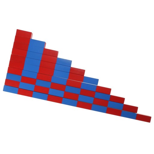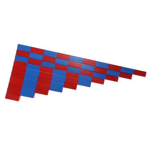 Смужки з числами Монтессорі складаються з 1-10 блоків смужок червоного та синього кольорів, червоні для непарних чисел, сині для парних чисел; 4 комплекти циліндрів без ручок червоного, синього, зеленого кольорів.